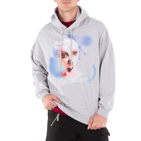 GCDS Human Being Printed Cotton Hoodie, Size Small - A2OM1909JB4-GREY (LPN465)