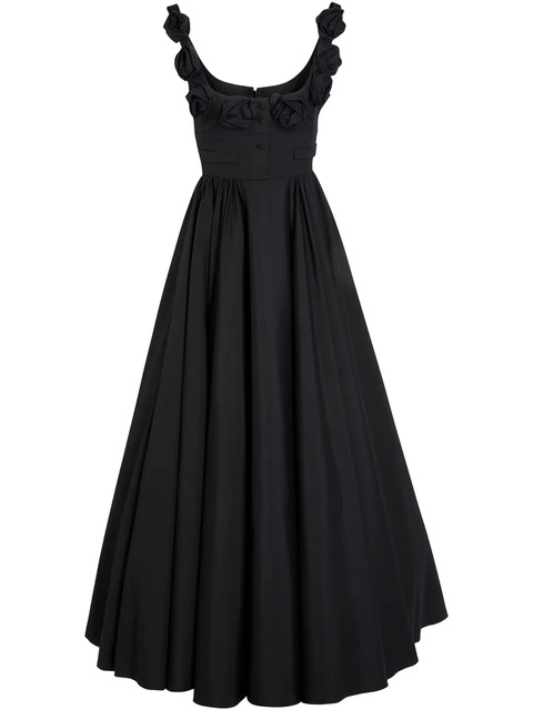 black concealed rear zip fastening square neck wide shoulder straps full skirt