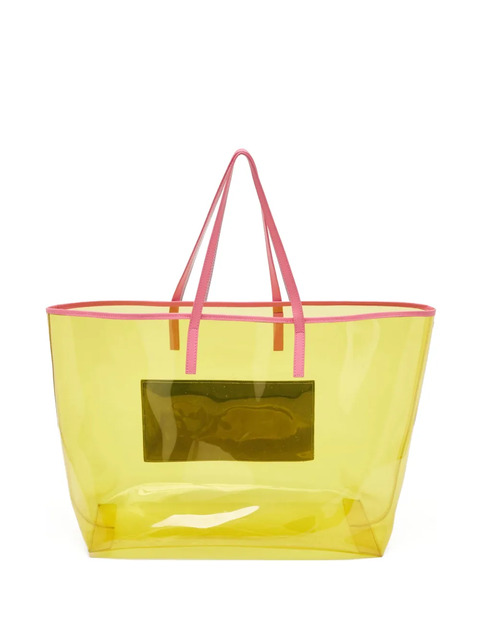 circa 2024 yellow pink leather handles logo patch Condition: GOOD. This previously owned and used item is in good condition with minimal signs of use. This may include fading of material or plating and scratches.