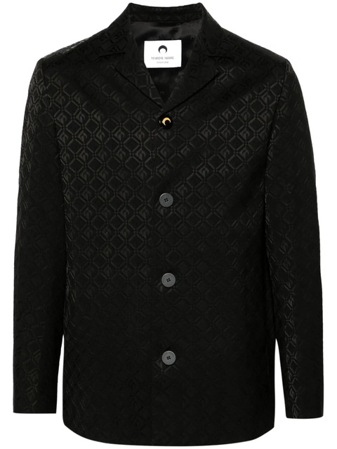 black Moon Diamant jacquard crescent moon print notched collar front button fastening long sleeves two side slit pockets partial lining logo-jacquard lining internal jetted pocket English rear vents straight hem