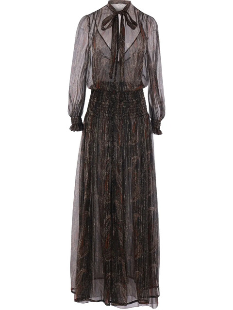 cedar brown front tie fastening semi-sheer construction long sleeves flared hem