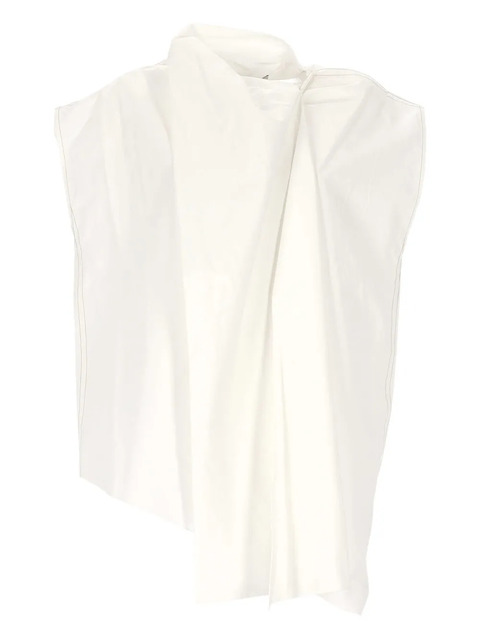 white cotton fabric draped design asymmetrical hem sleeveless high neckline