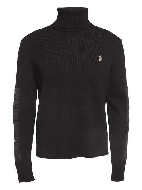 black ribbed knit padded sleeve panels turtleneck logo detail Condition: GOOD. This previously owned and used item is in good condition with minimal signs of use. This may include fading of material or plating and scratches.