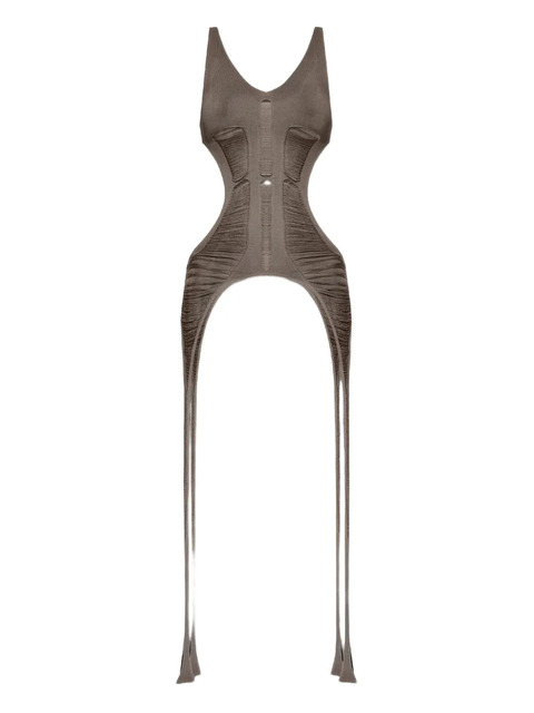 taupe grey U-neck cut-out detailing scoop back asymmetric hem