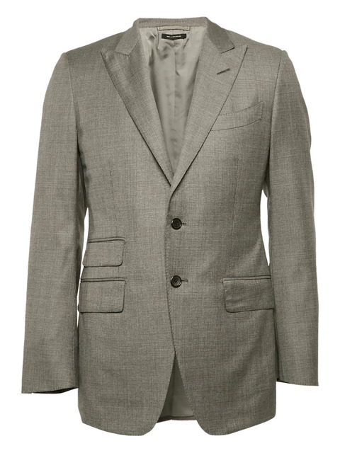 grey wool and rayon-silk blend double flap pockets single breasted button closure notched collar long sleeves