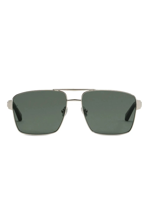 silver-tone pilot frame nose pads logo plaque at the arm These glasses come with a protective case.