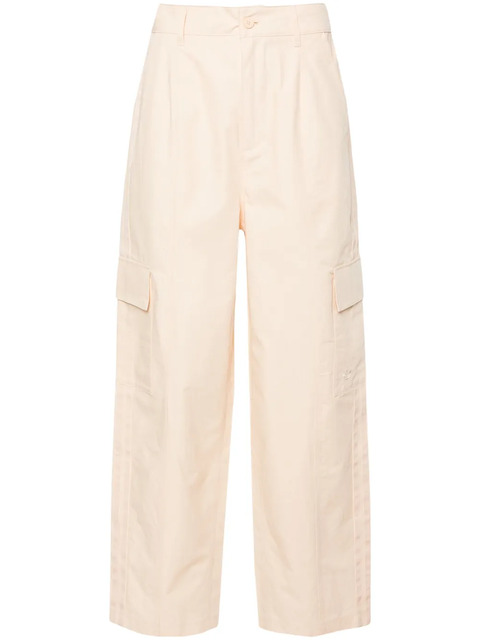 beige cotton ripstop texture signature 3-Stripes logo embroidered logo to the side high-waisted belt loops front button and zip fastening two diagonal pockets to the sides two side cargo pockets straight leg