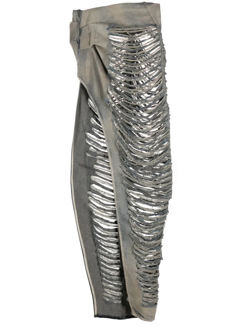 Rick Owens ripped-detail asymmetric denim skirt - 22109412 (LPN67511)