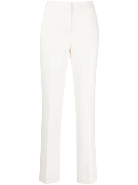 white pressed crease tailored cut slim cut mid-rise concealed front fastening two side inset pockets two rear jetted pockets