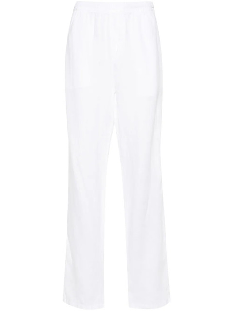 white linen/flax elasticated waistband two side slash pockets rear patch pocket straight leg internal drawstring fastening waist
