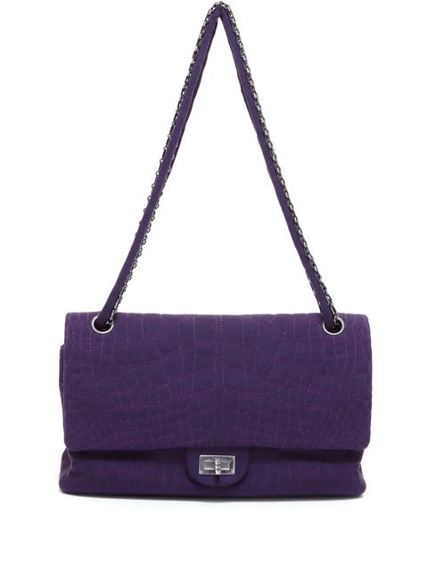 circa 2008 violet purple cotton embossed crocodile effect signature Reissue chain foldover top signature Mademoiselle turn-lock fastening main compartment internal logo patch multiple internal slip pockets slip pocket to the rear silver-tone hardware Serial Number: 11727371 Condition: GOOD. This previously owned and used item is in good condition with minimal signs of use. This may include fading of material or plating and scratches.