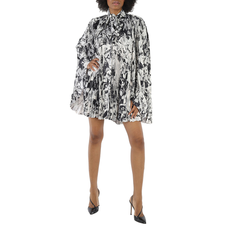 Balenciaga Black Pleated Dress With Logo, Brand Size 36 (US Size 2) - 601106 TGL23 1070 (LPN764)