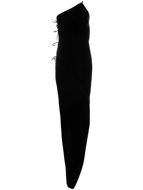black silk blend one-shoulder sleeveless side slit floor-length