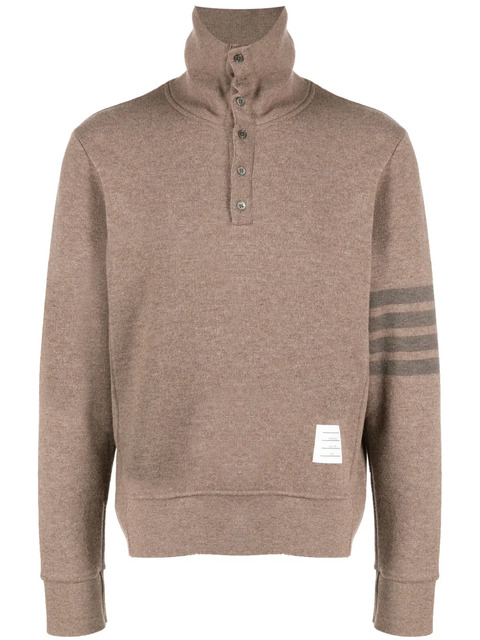 Light brown virgin wool ribbed-knit edge signature, featuring a 4-Bar stripe logo patch at the front. Includes roll neck collar, button placket closure, long sleeves, and straight hem finish.