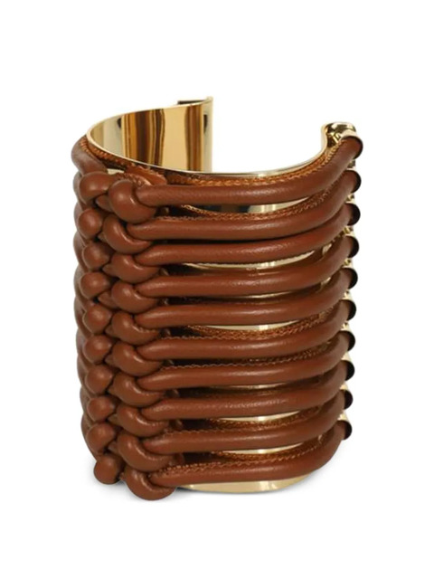 brown leather inserts gold-tone metal braided leather straps knotted detailing open cuff