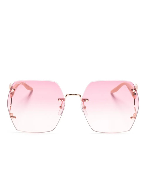 rose gold-tone/light beige metal/acetate geometric oversize frame rimless lenses pink tinted lenses UV-protective lenses nose pads cut-out detailing to the arms signature Double G logo to the arms sculpted arms with curved tips These glasses come with a protective case.