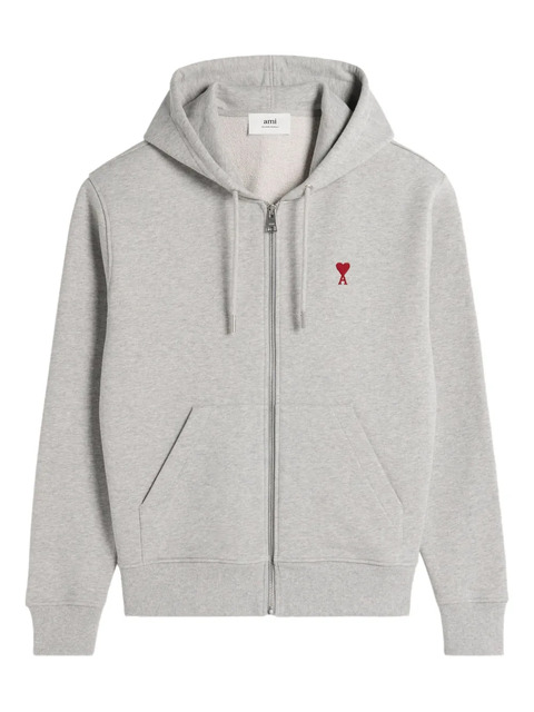 grey front zip fastening drawstring hood two side pouch pockets signature Ami de Coeur monogram motif