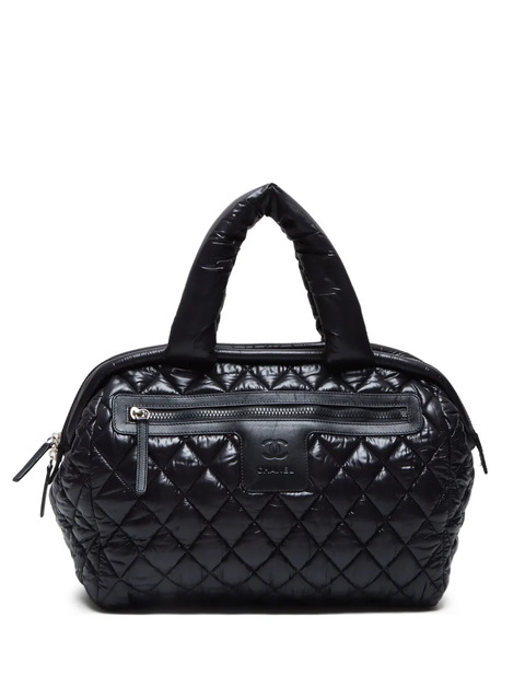 circa 2011s black ciré effect matelassé effect top zip fastening two flat top handles front zip-fastening pocket signature interlocking CC logo debossed logo to the front internal zip-fastening pocket contrast lining serial number: 15502493 Condition: GOOD. This previously owned and used item is in good condition with minimal signs of use. This may include fading of material or plating and scratches.