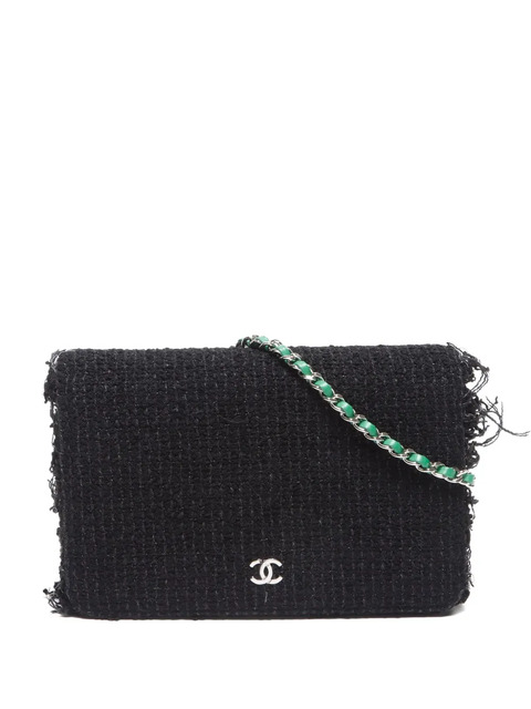 circa 2016 black/grass green wool tweed leather and chain-link shoulder strap signature interlocking CC logo foldover top main compartment internal zip-fastening pocket internal logo patch multiple internal slip pockets contrast lining rear patch pocket Serial Number: 23646950 Condition: GOOD. This previously owned and used item is in good condition with minimal signs of use. This may include fading of material or plating and scratches.