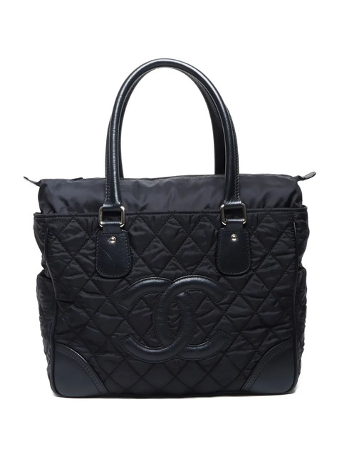 circa 2005-2006 black diamond quilting leather trim signature Interlocking CC logo two rolled top handles top zip fastening two side patch pockets main compartment Serial Number: 10822298 Condition: GOOD. This previously owned and used item is in good condition with minimal signs of use. This may include fading of material or plating and scratches. This item comes with an original authenticity seal. This item comes with an original Chanel authenticity card.