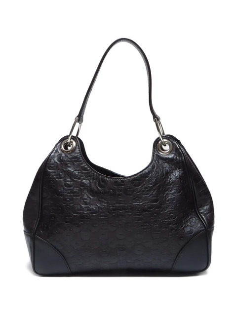 circa 2000-2015 black leather signature Horsebit pattern piped-trim detailing single shoulder strap open top main compartment full lining silver-tone hardware Condition: GOOD. This previously owned and used item is in good condition with minimal signs of use. This may include fading of material or plating and scratches.
