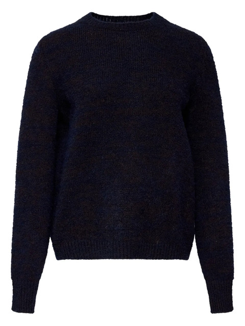Brushed finish sweater from Maison Margiela. Navy blue crew neck long sleeves with ribbed cuffs and ribbed hem.