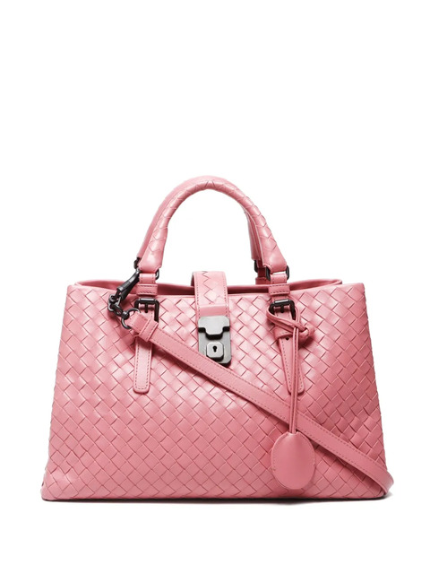 circa 2012-2013 coral pink nappa leather signature Intrecciato design adjustable detachable shoulder strap two rolled top handles foldover top concealed magnetic fastening partitioned compartment debossed internal logo internal zip-fastening pocket set of keys gunmetal-tone hardware Condition: GOOD. This previously owned and used item is in good condition with minimal signs of use. This may include fading of material or plating and scratches.