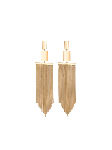 gold-tone rectangular plates fringe detail post fastening These earrings come as a pair.