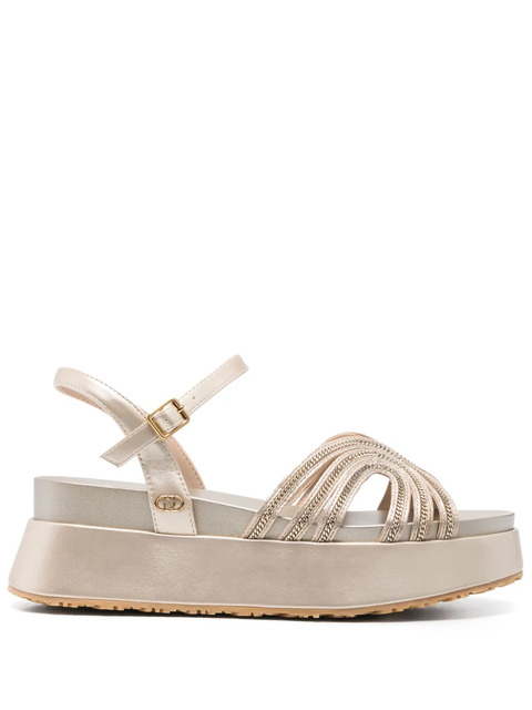 gold-tone buckle-strap fastening round open toe flatform sole