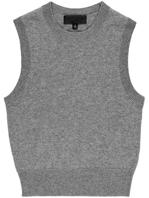 ash grey cashmere knitted construction mélange effect ribbed-knit edge round neck sleeveless